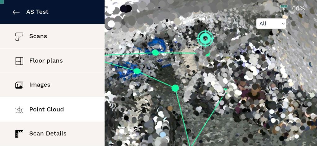 A point cloud is a 3D representation of the space you’ve scanned using the NavLive Scanner. It consists of thousands or even millions of individual points, each captured as the scanner samples its surroundings. The colour of each point is derived from the images taken during the scan, providing a realistic view of the environment.