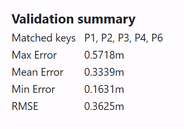 • A validation summary is shown, including maximum, minimum, average, and RMSE (root mean squared error).