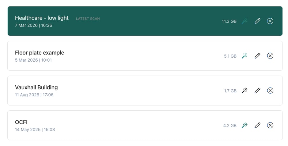 Your scan will process automatically (this may take a few minutes depending on its size), then appear in the Scan List for your project.